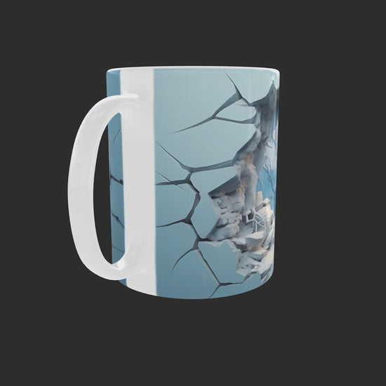 This design creates the illusion of looking through a cracked wall into a cold and magical world, making it the perfect mug for winter lovers and fans of modern, artistic details.