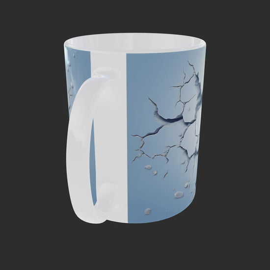 Impress with a striking design thanks to our 11 oz mug featuring a majestic snow leopard emerging through a realistic “broken wall” visual effect.
